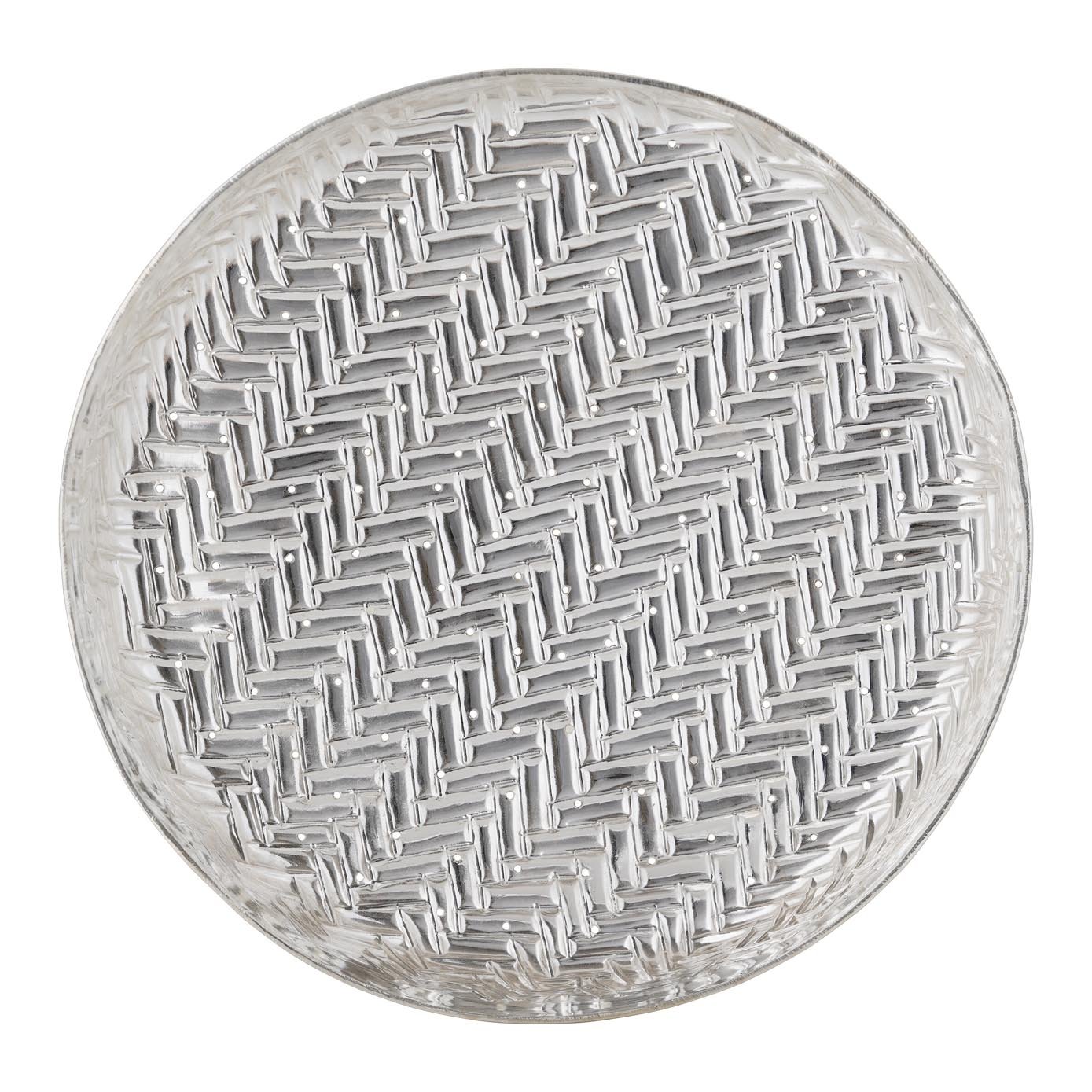 A silver Jalladai with holes to shower water to the Gods and Goddesses designed with visiri pinnal with carvings and hand carved to make the Abishekam more special.