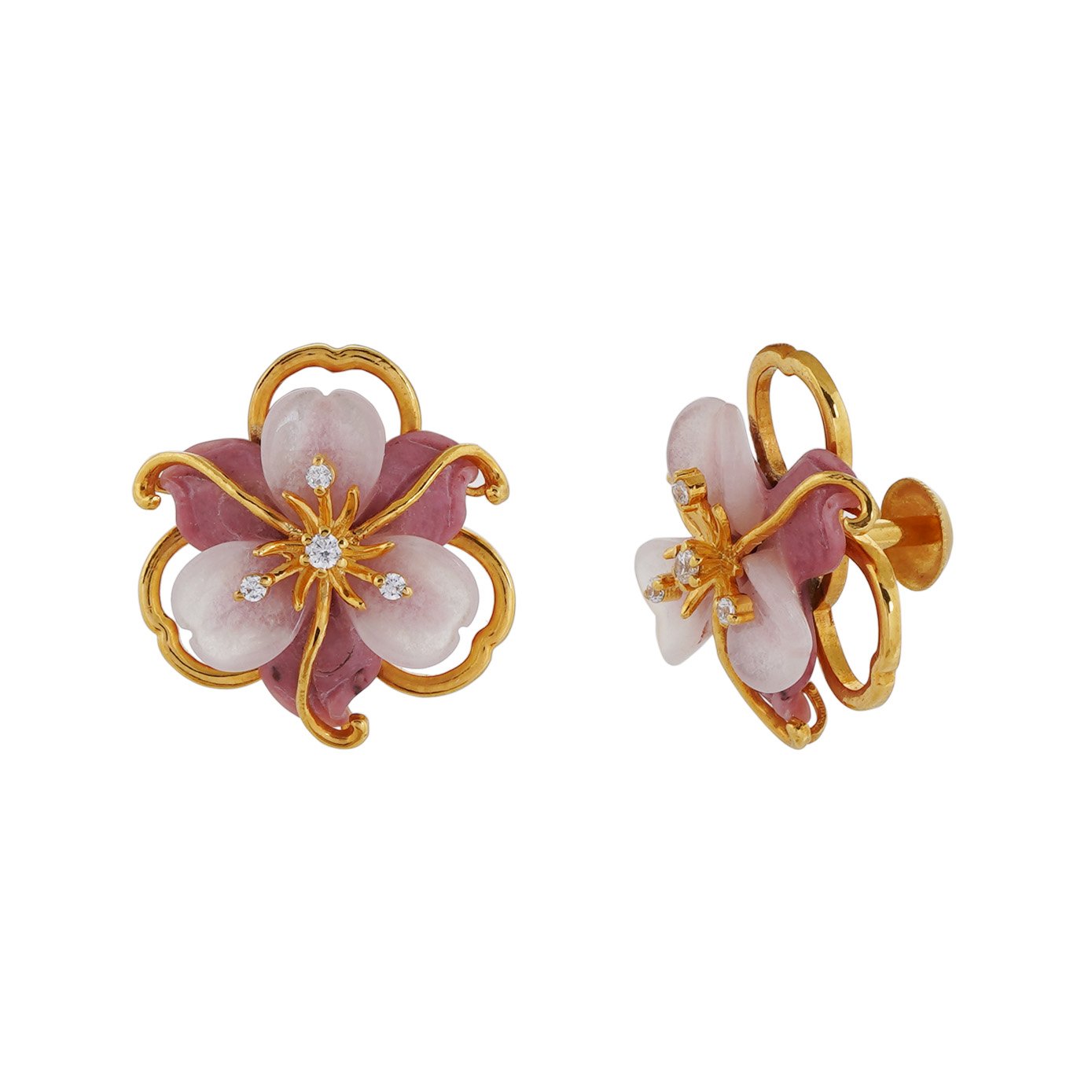 A heart throbbing pendant and earring set with customizable natural colored stone like the pink Lapis stone used in this beautiful pendant, paired up with a thin gold chain gauzed with gold and pearl beads on it. The zircons added to it the gold string will be a great combo and makes this epic piece will be an enchanting collection to add-up to your wardrobe.