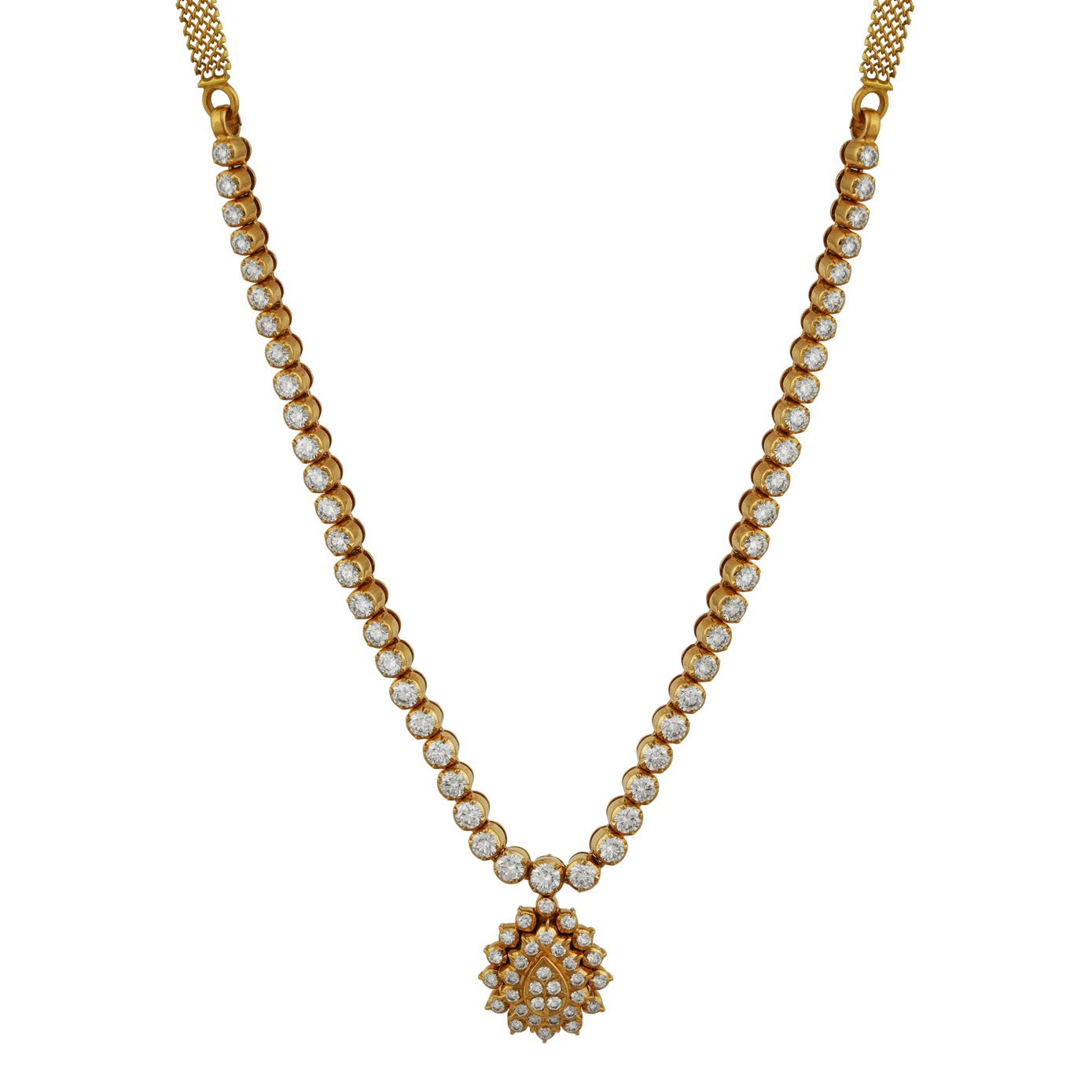 A breath-taking and luxurious piece of jewelry that embodies the timeless beauty and brilliance of diamonds, designed to make a dazzling statement and capture the hearts of who all behold it. The floral pendant as the center piece adds more sophisticate look to the jewelry, crafted in such a way that reflects the light with unparalleled radiance, creating a mesmerizing dance of sparkles that captures the essence of elegance.