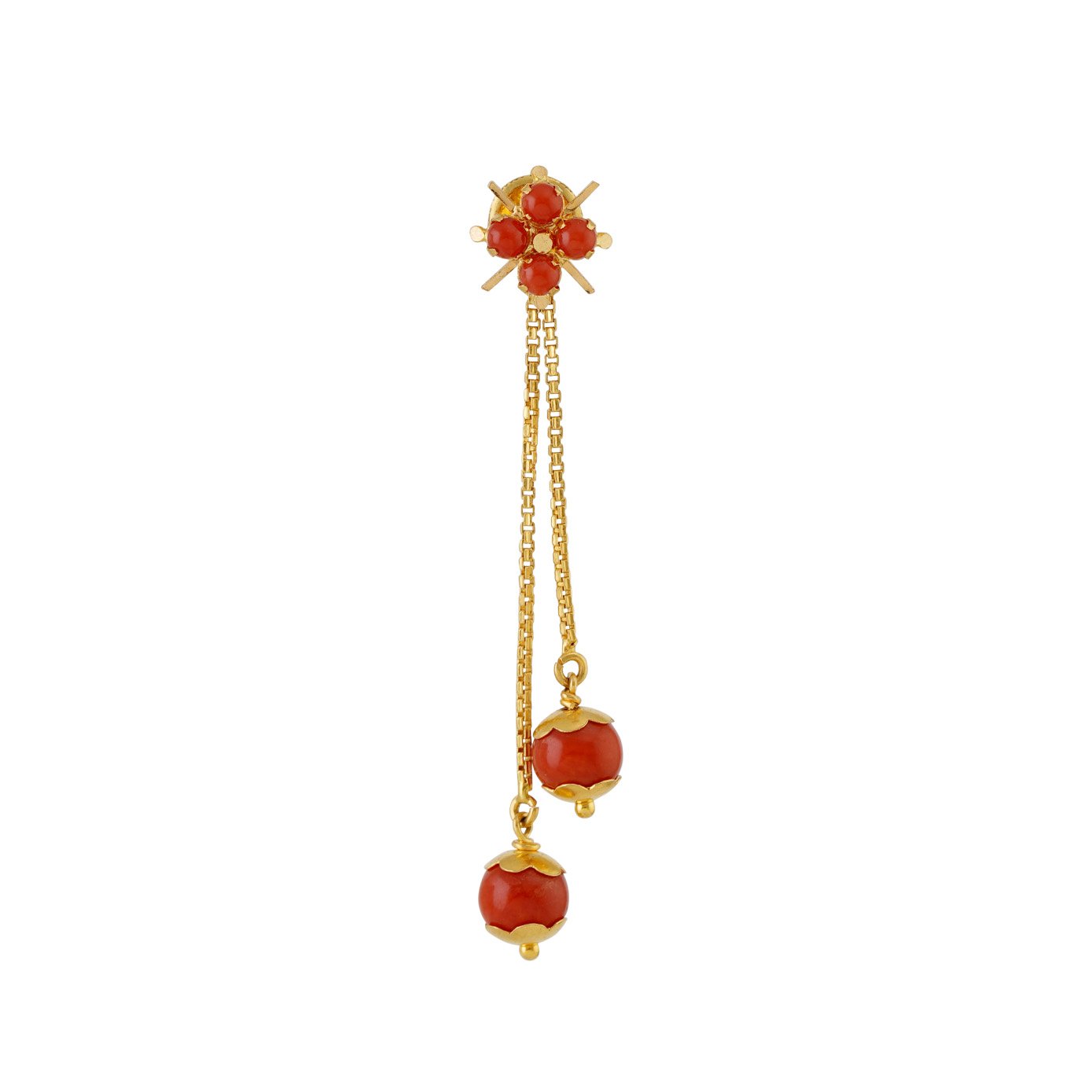 "Adorn yourself with the vibrant beauty of our Coral-Studded Earring, featuring stunning coral drops delicately strung along a long chain. These earrings capture the essence of ocean-inspired elegance, adding a pop of color and movement to your look. Embrace the allure of the sea with this captivating accessory."