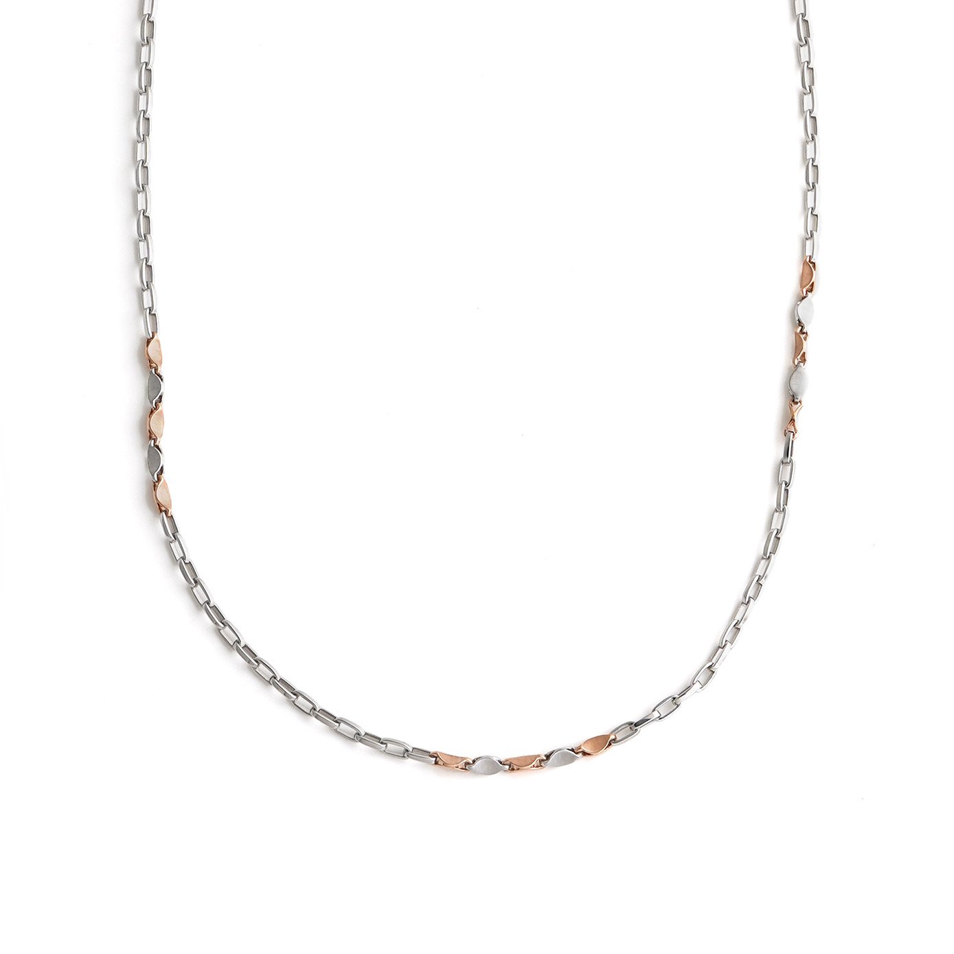 Introducing our sophisticated Platinum Paperclip Chain Bracelet, a contemporary twist on classic elegance. Crafted with meticulous attention to detail, this bracelet features sleek paperclip-style links made from luxurious platinum, offering a modern and versatile look. Adding a touch of warmth and contrast are the rose gold hooks that delicately link each section of the chain. The subtle hint of rose gold infuses the bracelet with a sense of sophistication and refinement, elevating its overall allure. Whether worn alone for a sleek and understated statement or layered with other pieces for a more dynamic look, our Platinum Paperclip Chain Bracelet is the epitome of effortless style and timeless sophistication. Embrace modern luxury with this exquisite piece, designed to elevate any ensemble with its understated elegance and refined charm.