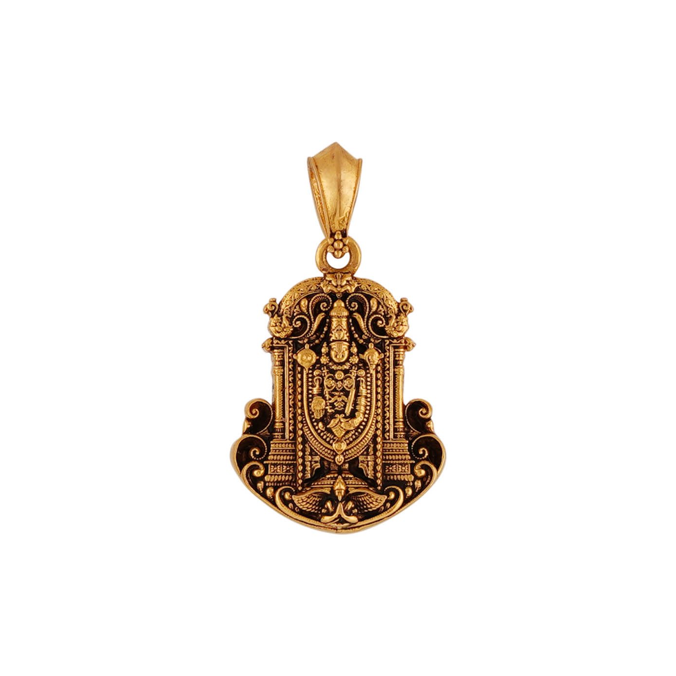 "Immerse yourself in divine grace with our Lord Balaji pendant from ANS Dhviyam Jewels. This exquisite piece captures the majestic presence of Lord Balaji in full alangaram (adornments), intricately detailed to reflect the deity's splendor. At the base, Karudaalvaar is depicted in the peetam (pedestal), enhancing the pendant's spiritual significance. The meticulous craftsmanship and attention to detail make this pendant a true masterpiece, perfect for those who seek to carry a symbol of devotion and opulence close to their heart."