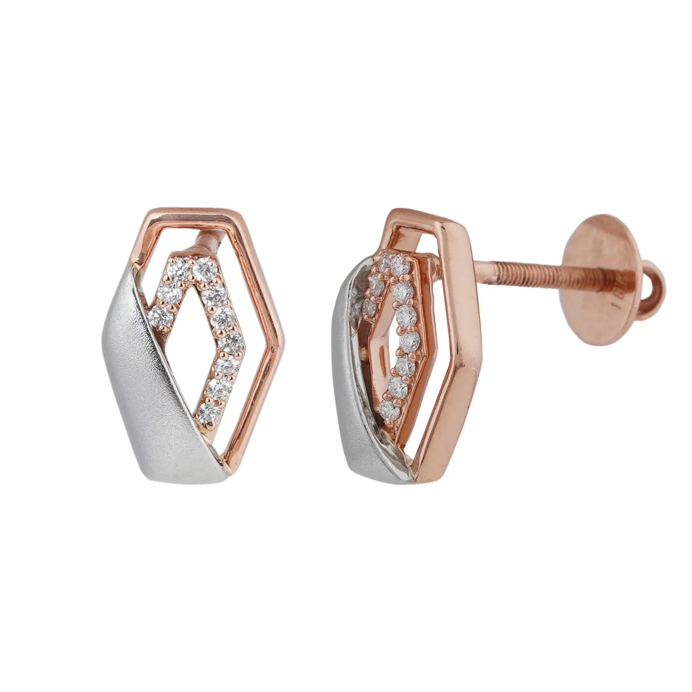 The abstract beauty and a striking pair adorned with dazzling diamonds and the amalgamation of platinum and 18k rose gold in the shape of hexagon.