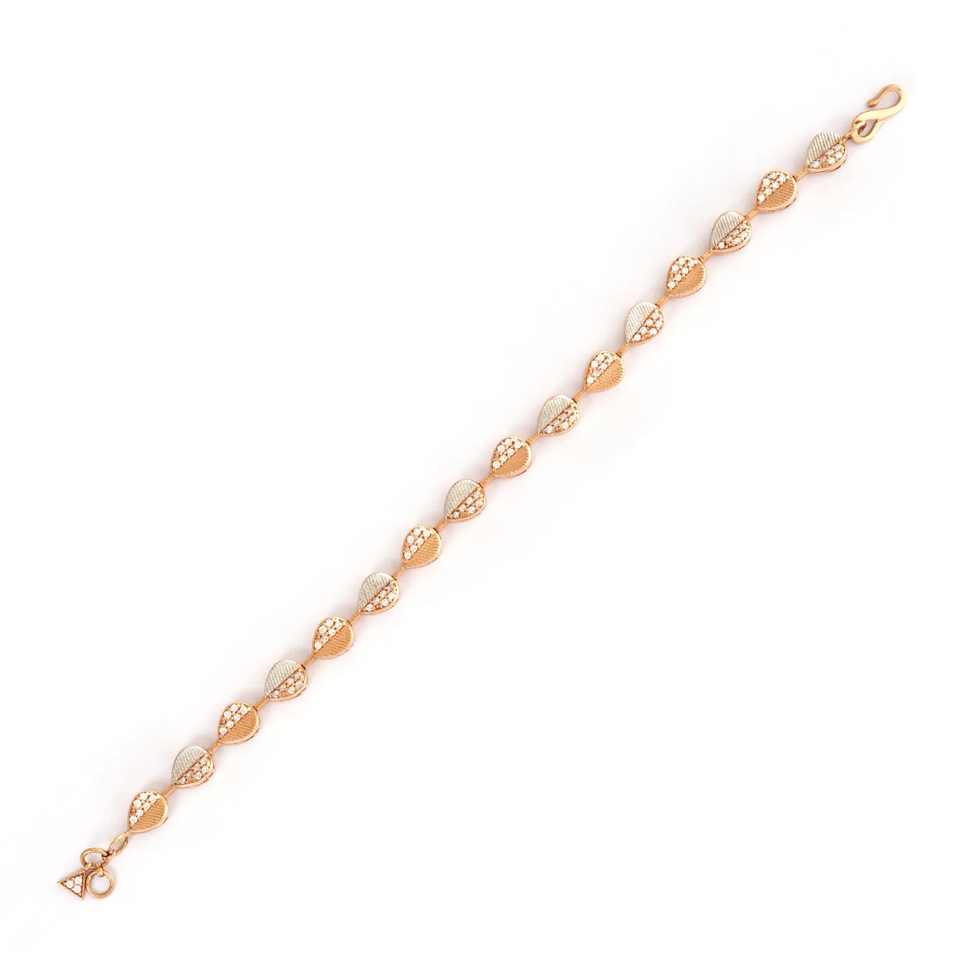 A string of leaves added together in the amalgamation of two unique metals like rose gold and rhodium with patterns and zircons with a dazzle added to it. Such a hearty delight to all the women loves styling.