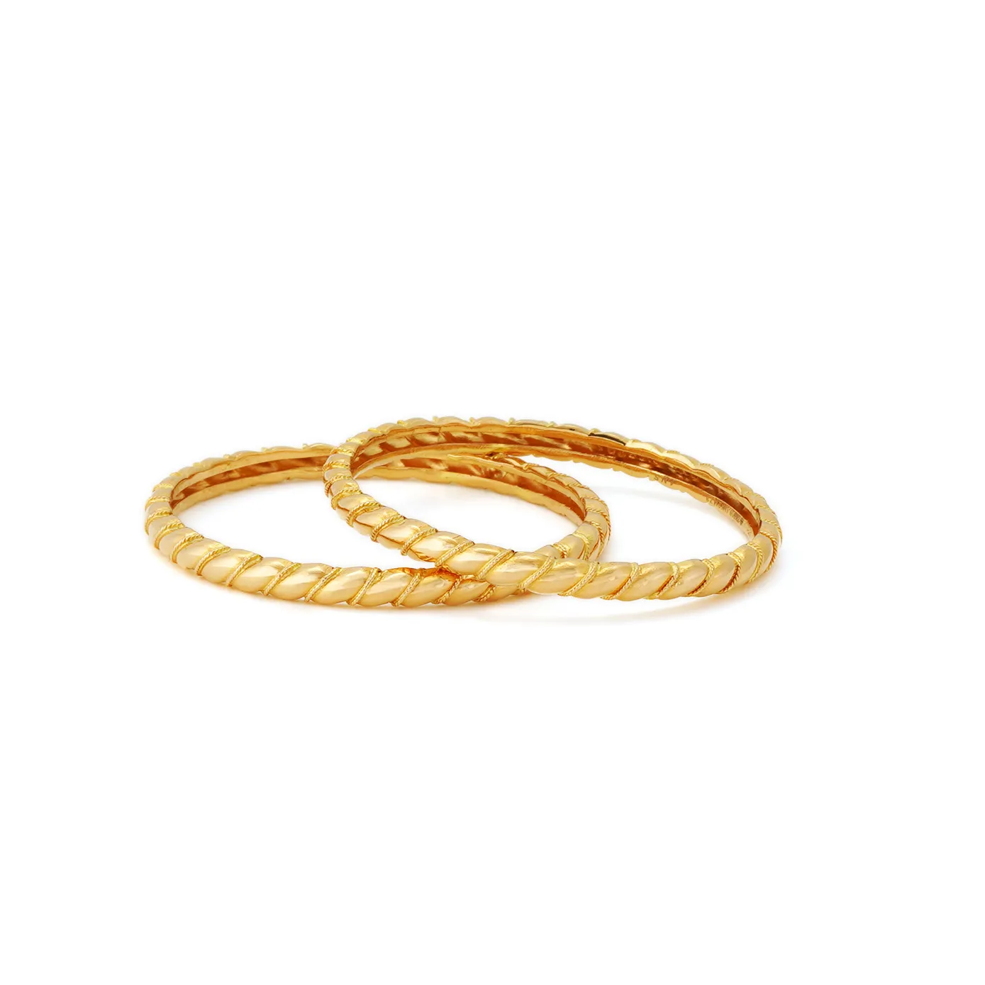 A trending design with traditional touch from the house of ANS Dhivyam, the most breath-taking bangle perfect for your everyday dazzle. This exclusive 22k gold bangle with spiral design and rawa model is undoubtedly a reason for your golden shopping experience.