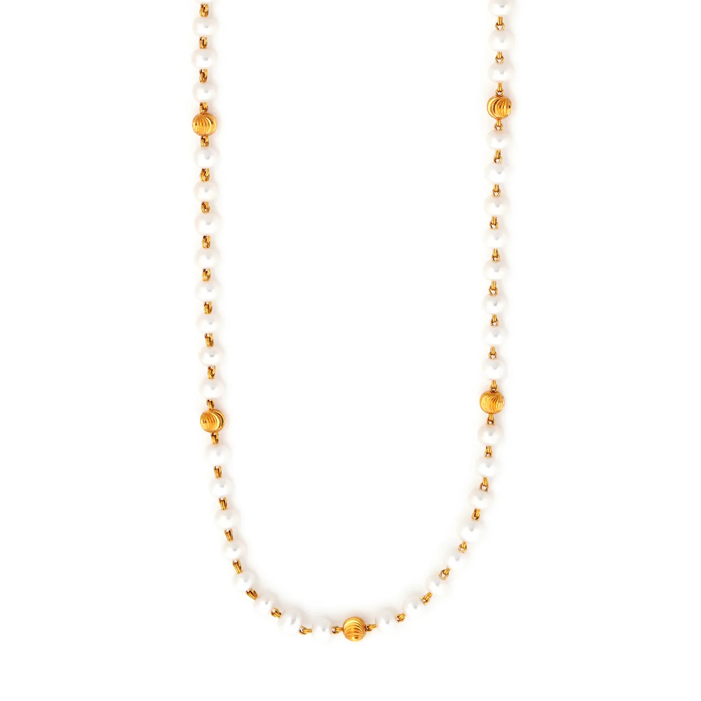 This contemporary pearl beaded chain to add a bling to all your ensembles crafted on 22k gold. This piece of jewellery that’ll pair up effortlessly with all your outfits.