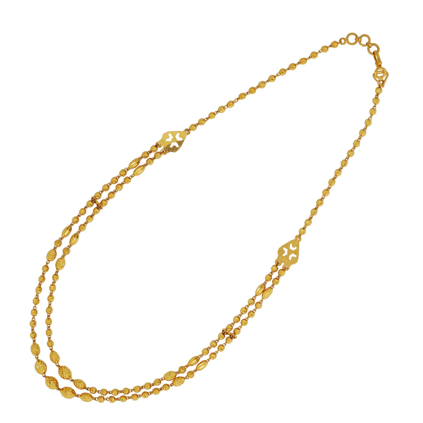 Crafted to be effortlessly modern and timelessly classic with this double layered irattai vadam chain with 22k golden beads added to it. Leave everyone awestruck with this timeless beauty and pair it up with a beautiful Kancheevaram saree and test your final look in the mirror. A true stunner!