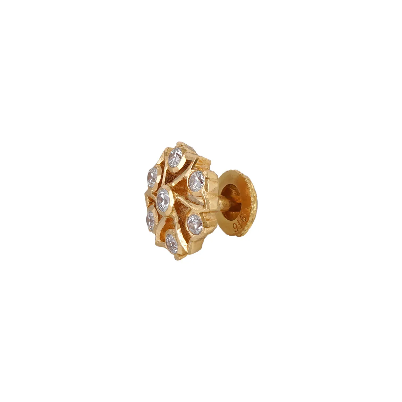 A simple chakra motif on 22k gold with shimmering zircons will be a great option to match your traditional touch of elegance to all your ethnic outfits on a beautiful pattern.
