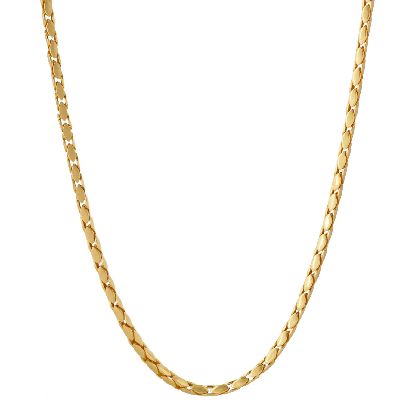 A 20 inches gold beauty to be added up to your daily ensemble to bring in an extra glam to your outfits. An extremely fine diamond cut motifs linked together to a beautiful arch in the form of gold chains.