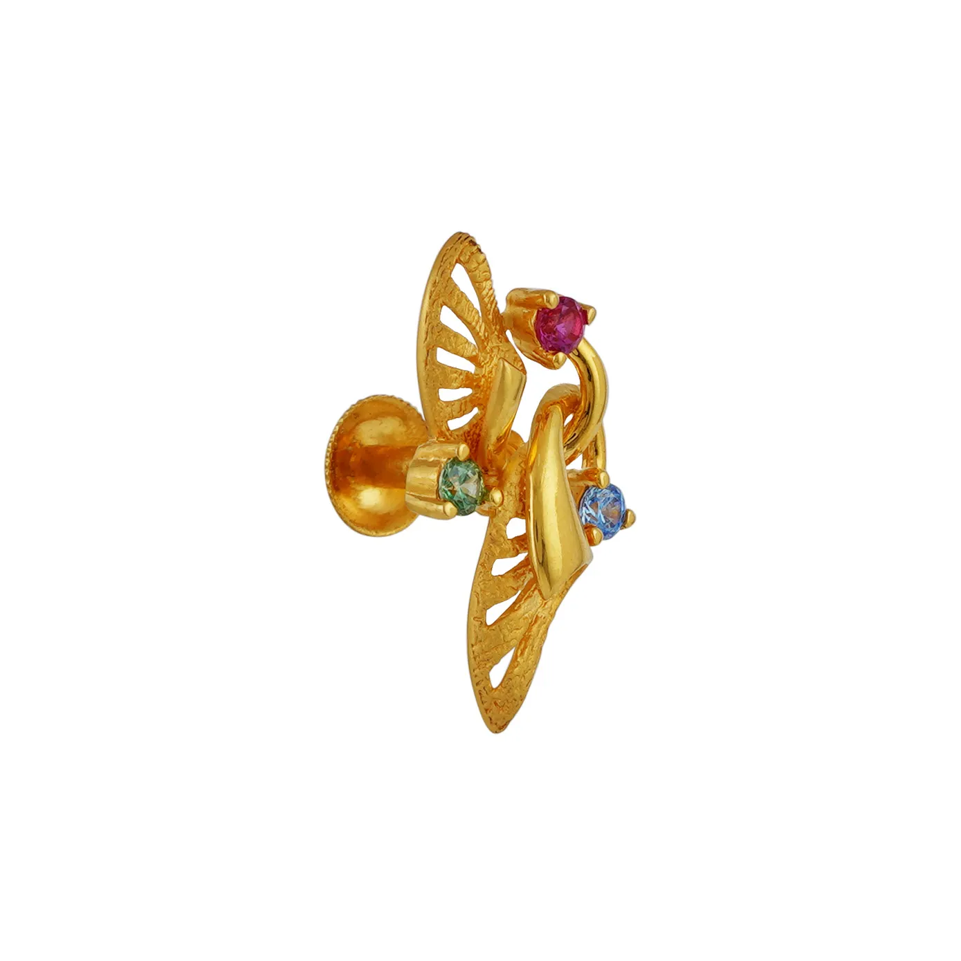 Two mythical dragons interwind together in 22k gold studded with colorful stones to be a shield to cover up your child with positivity in the form of earrings.