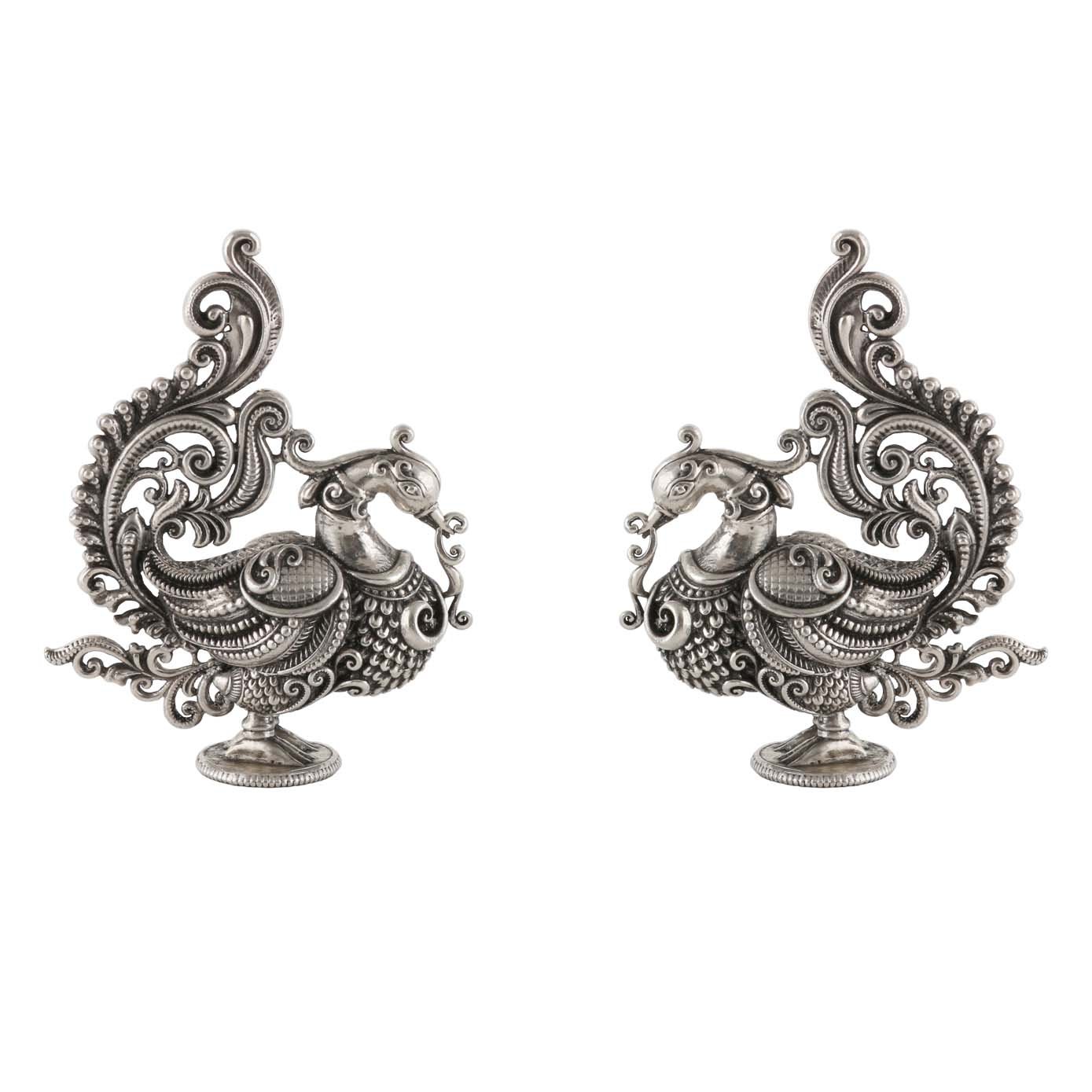 This beautiful idol of mayurs standing aside our moola moorthi of our pooja mandir will be a breath-taking view. Such an antique piece with beautiful carvings on it, decorates our divine space even better.