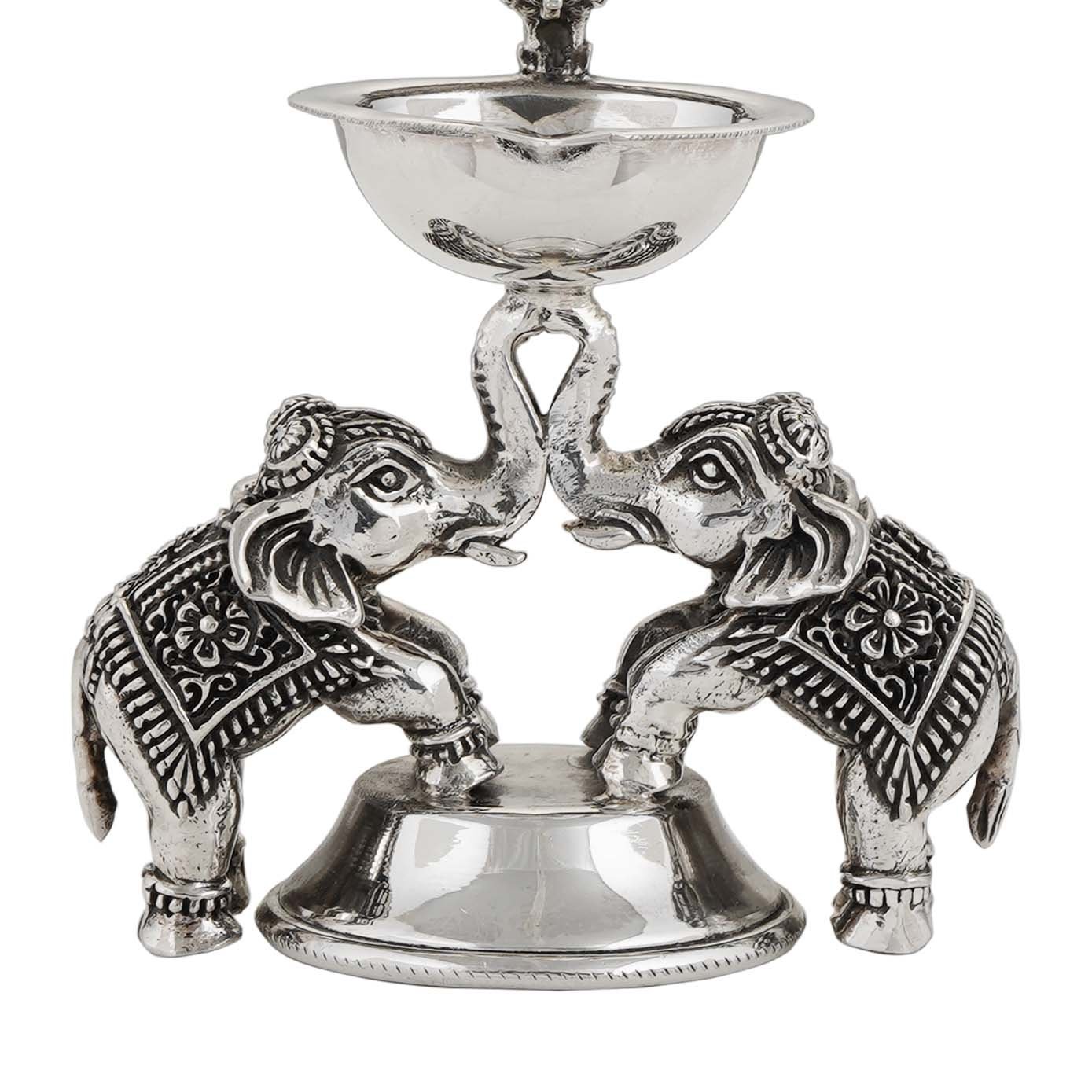 What a precious lamp piece to don your pooja room! This ornate elephants on the stem to make the complete assembly strong and mighty to hold the holy deepam high as the peacock keeps administering the whole process. What a narration right! Make it yours today.