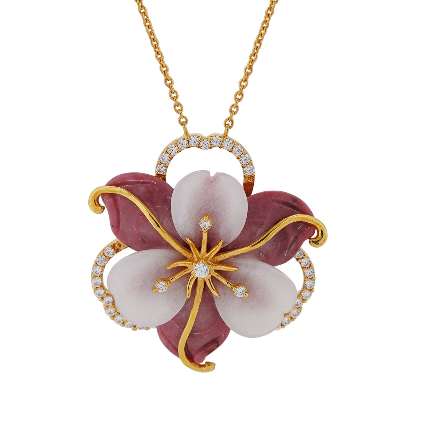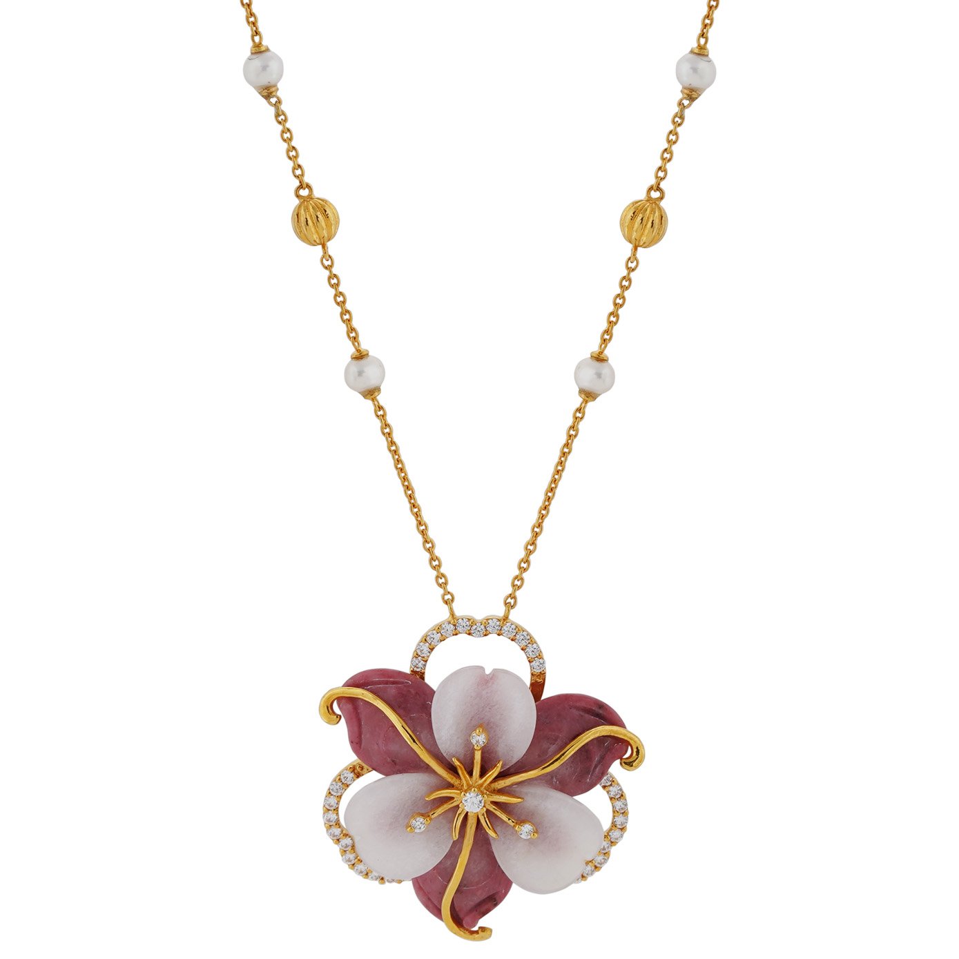 A heart throbbing pendant and earring set with customizable natural colored stone like the pink Lapis stone used in this beautiful pendant, paired up with a thin gold chain gauzed with gold and pearl beads on it. The zircons added to it the gold string will be a great combo and makes this epic piece will be an enchanting collection to add-up to your wardrobe.