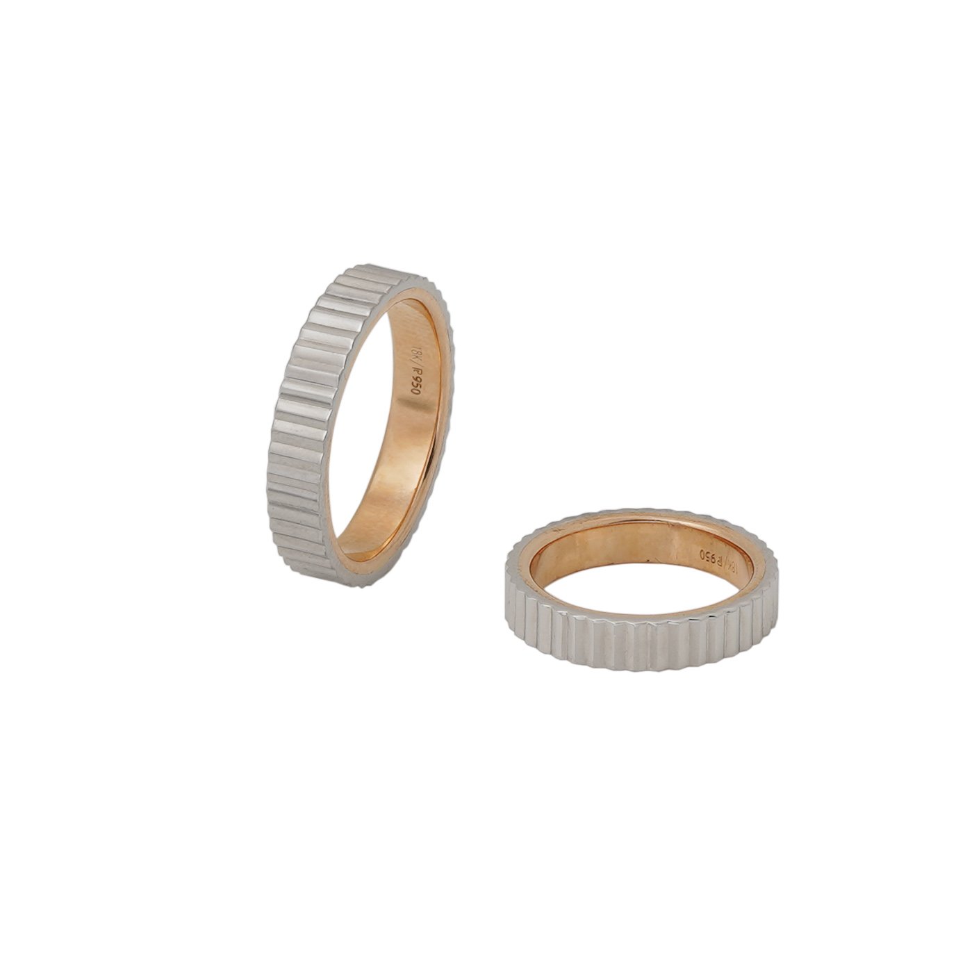 Adding a touch of warmth and contrast, a slim inner line of Rose Gold encircles the interior of the band. This delicate addition not only enhances the visual appeal but also symbolizes the union of opposites – the primal and the refined, the fierce and the delicate. The Platinum Alligator Teeth Pattern Ring with a delicate inner lining of Rose Gold. This masterpiece transcends conventional jewelry, evoking a sense of primal allure while exuding a refined elegance that is truly captivating. This makes it to a perfect piece as a couple ring.