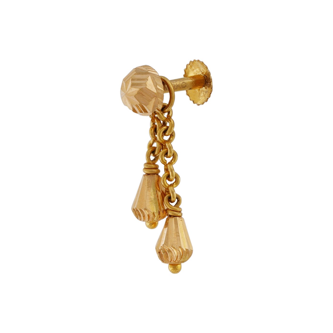"Elevate your elegance with our Classic Bud Gold Ear top, meticulously crafted from 22kt gold. Delicate strings of gold chains gracefully cascade, culminating in tear-drop-shaped beads that complete this timeless and sophisticated look. Embrace the timeless beauty of this exquisite accessory, destined to capture hearts and inspire admiration."