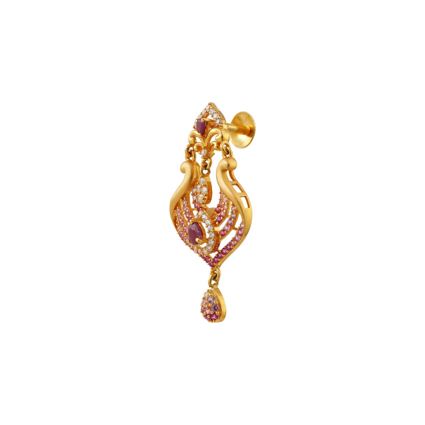 "Indulge in the regal beauty of our casting Chandhbali earrings, adorned with a mesmerizing array of red and zircon stones in various shades. These exquisite earrings are a celebration of opulence and style, adding a touch of grandeur to any ensemble. Elevate your look with the rich and captivating hues of these statement earrings."