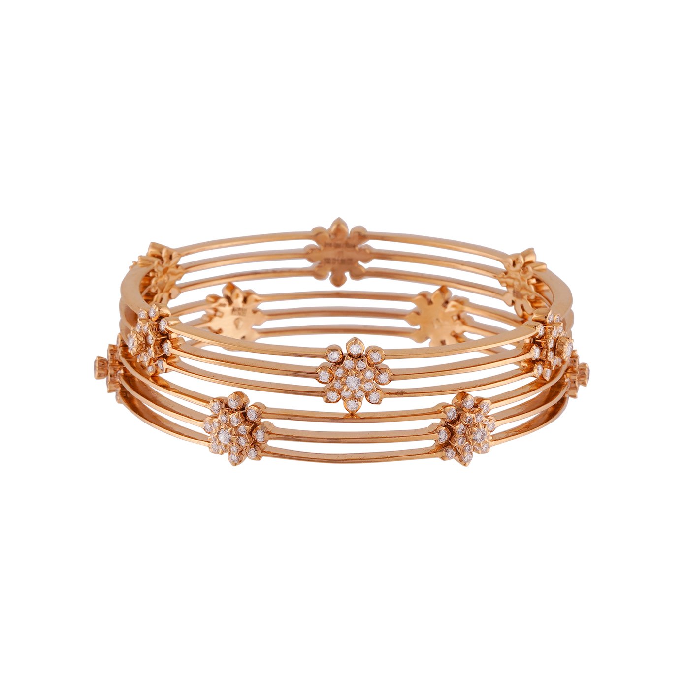 As a pair, these bangles resonate with the duality of grace and strength, a reflection of the wearer's inherent beauty and resilience. Let the lustrous rose gold caress your wrists, while the diamonds radiate a celestial glow, embracing you in an ethereal tapestry of luxury and refinement. Elevate your style with this union of craftsmanship and opulence—a timeless celebration of femininity and the enduring allure of diamonds in a close setting. Indulge in the extraordinary, as these bangles whisper tales of elegance and sophistication on each graceful curve of your wrists.