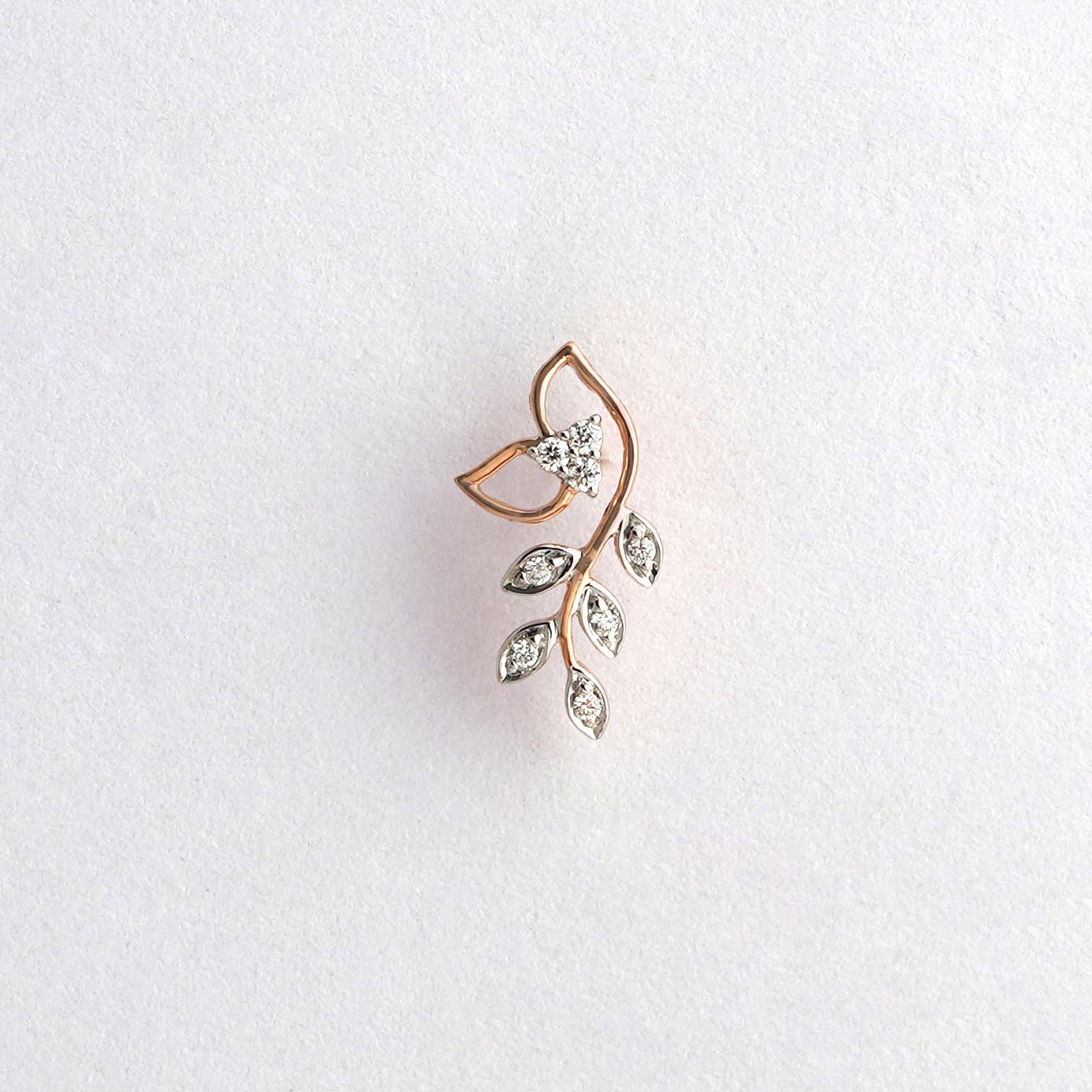 Introducing our enchanting Diamond Creeper Earrings—a botanical-inspired masterpiece designed to adorn your ears with elegance and grace. Crafted with meticulous attention to detail, these earrings feature a delicate creeper design adorned with shimmering diamonds, evoking the beauty of nature in every detail. The intricate creeper design gracefully winds around the ear, with each leaf meticulously studded with sparkling diamonds that catch the light with every movement. At the center of each earring lies a captivating flower stud, adding a touch of femininity and charm to the design. Crafted from the finest materials and designed to complement any ensemble, these earrings are the perfect accessory for both formal occasions and everyday wear. Whether worn alone as a statement piece or paired with other favorites for a more personalized look, our Diamond Creeper Earrings are sure to make a lasting impression with their exquisite craftsmanship and timeless allure.