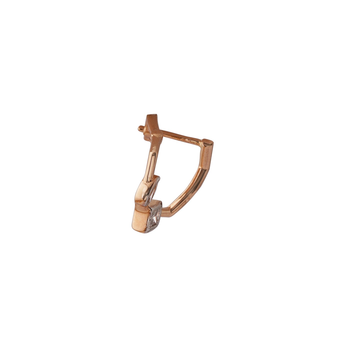 Introducing our captivating Hexagonal Diamond Earrings—a harmonious blend of modern elegance and timeless sophistication. Crafted with meticulous attention to detail, these earrings feature a striking hexagonal pattern crafted from luxurious 18kt rose gold. Each hexagon is meticulously studded with shimmering diamonds, adding a touch of brilliance and sparkle to the design. The combination of the warm rose gold and the dazzling diamonds creates a mesmerizing contrast, making these earrings a true statement piece. Versatile enough to be worn for both casual and formal occasions, these earrings are the perfect accessory to elevate any ensemble. Whether worn alone for a chic and minimalist look or paired with other favorites for a more dramatic effect, our Hexagonal Diamond Earrings are sure to turn heads and spark conversations with their exquisite craftsmanship and timeless allure.