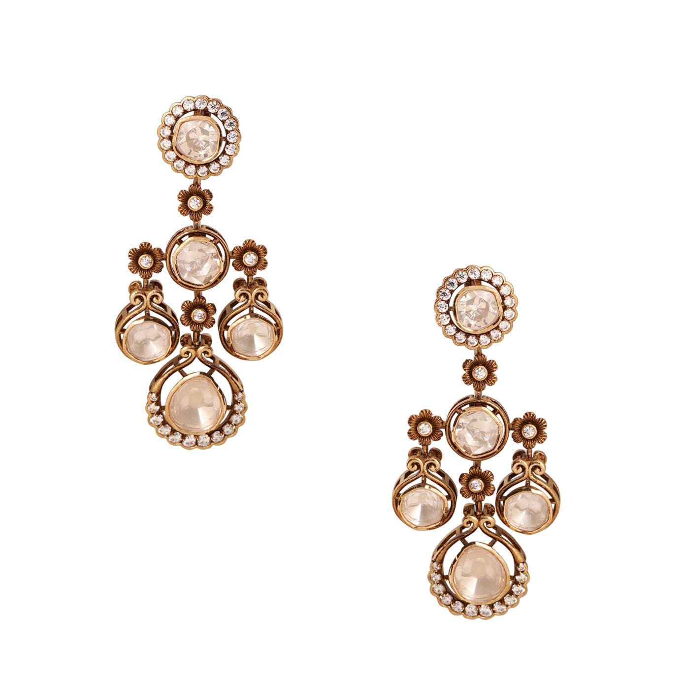 "Adorn yourself with the regal splendor of this Moissanite-studded necklace and matching earrings, meticulously crafted in an opulent Mughlai pattern. Each piece is a masterpiece, featuring intricate details that reflect the grandeur of Mughal artistry, designed to seamlessly complement your ethnic attire. Embrace the fusion of tradition and contemporary elegance, and let this exquisite set elevate your style to new heights, making you the epitome of grace and sophistication in every ensemble."