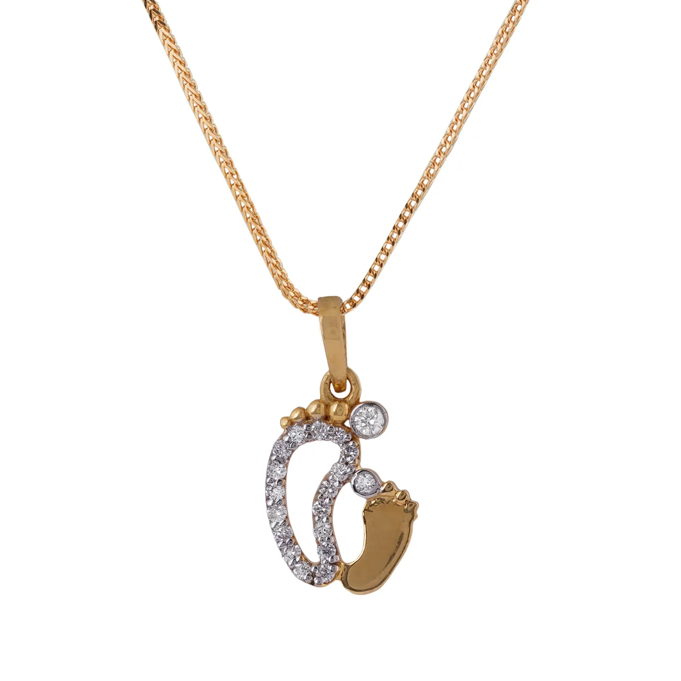 Diamond embedded footprint of the tiny tot following the foot print of it’s mom, is a unique collection, shows how the mom and her little one are connected not only in her womb but even in every step of her kid.