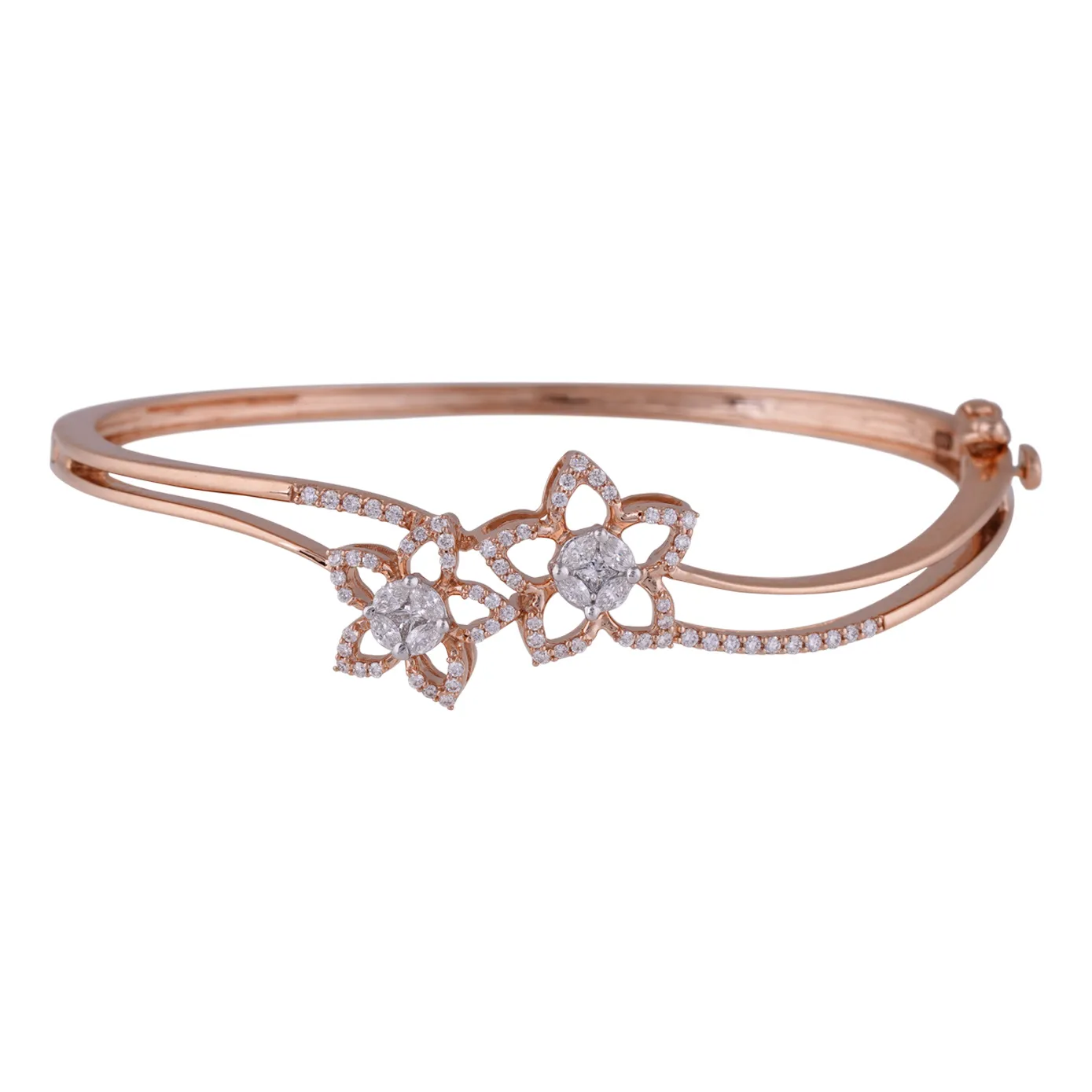 Dainty floral bracelets in 18k rose gold. Ethereal yet intricate…this beautiful floral studded bracelet designed with 18k Rose Gold matches any office wears and makes you to stay on trend.