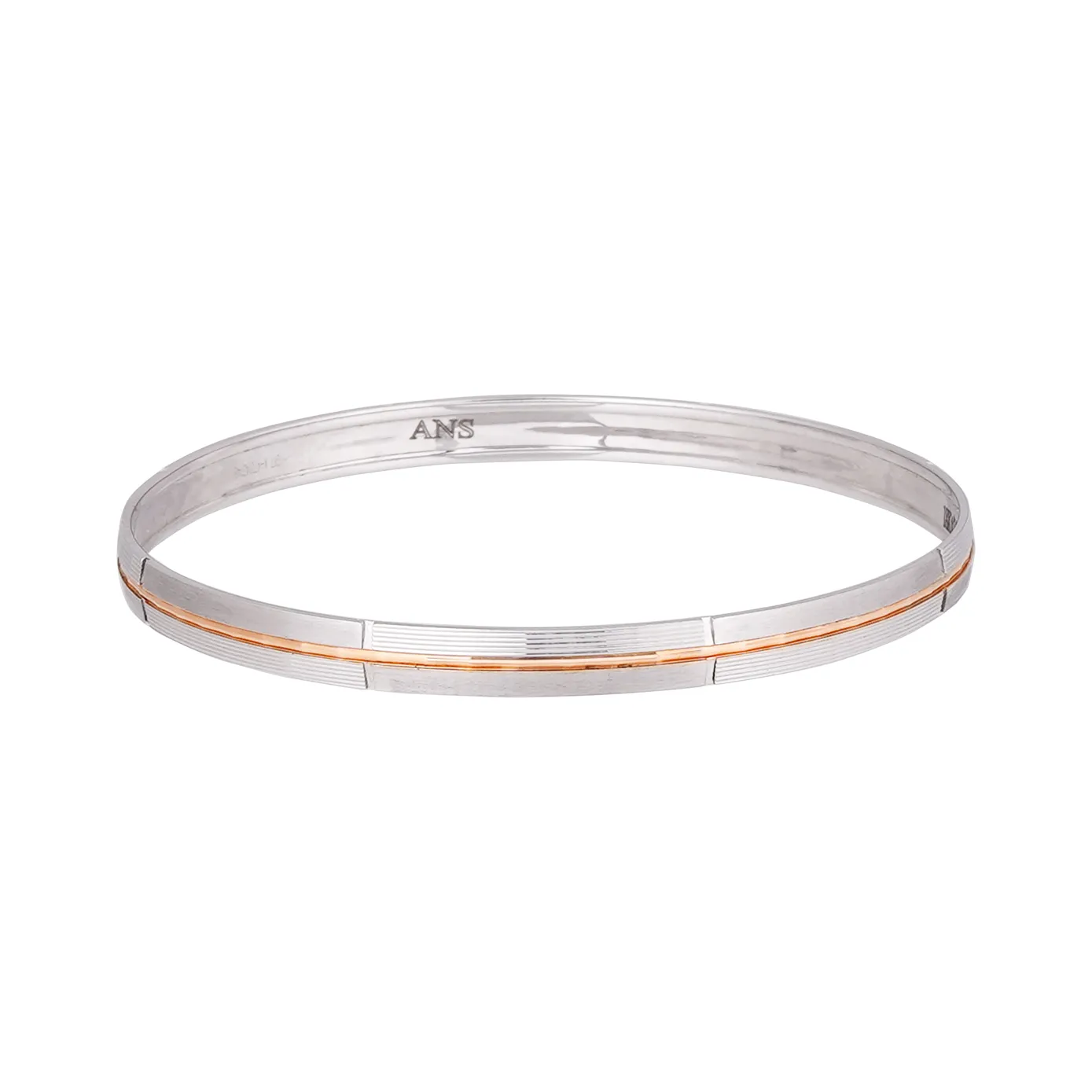 Turn heads with this dainty yet striking kada with 95% platinum grooved on it, with rose gold rim in the center. This stunning bangle bracelet will be a great pick for all your outfits.