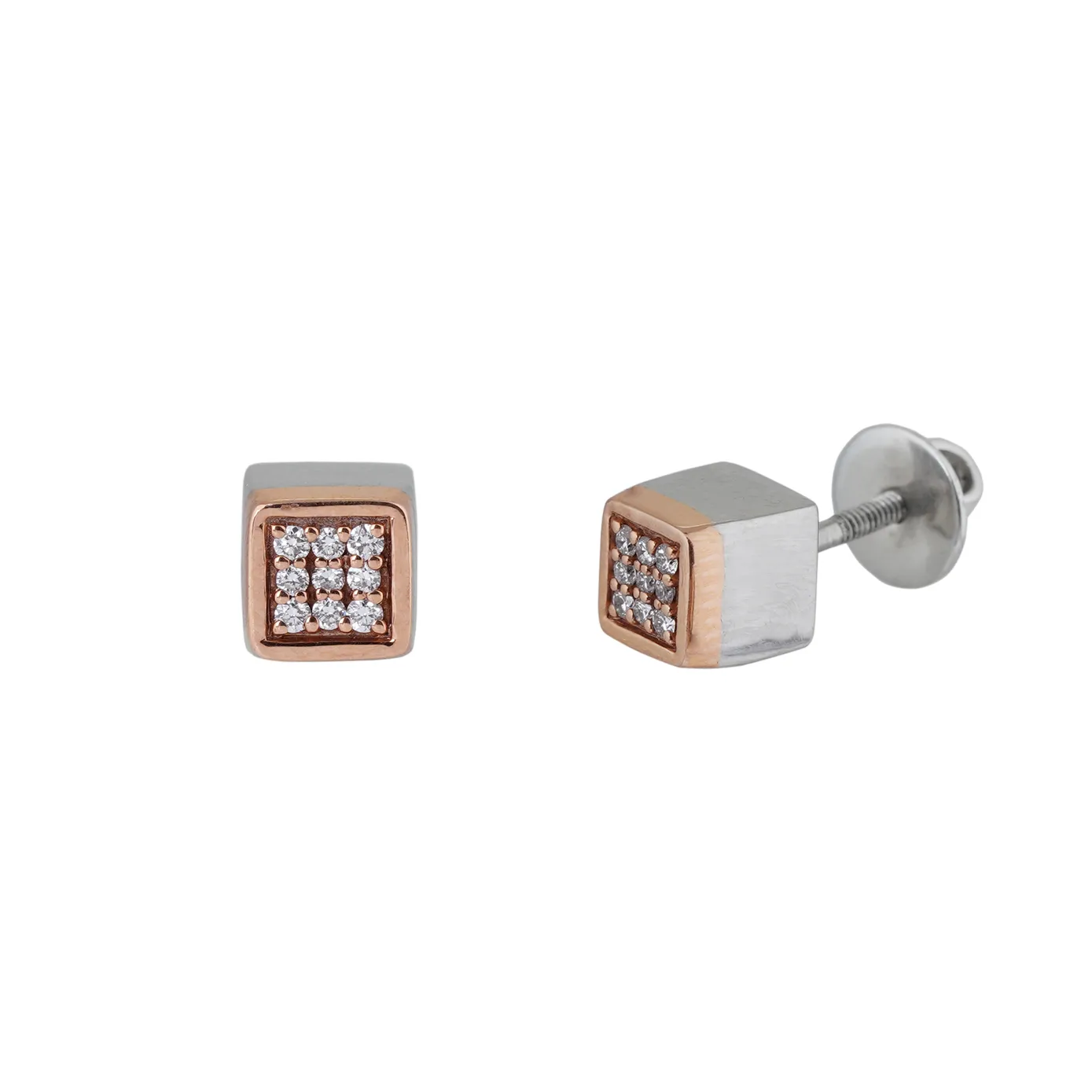 Shimmering with diamonds studded in a cube and polished with 18k rose gold. This cute little trinket will sure be an asset to your modern look.