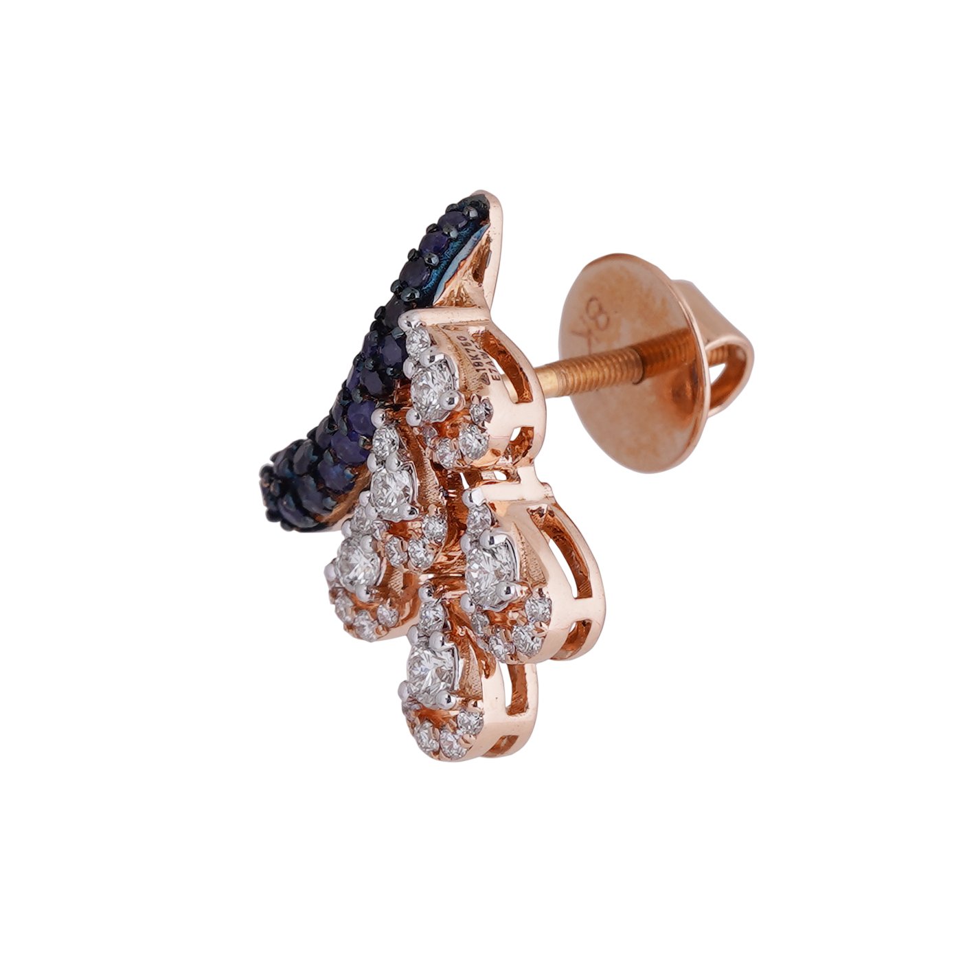These brilliant-cut diamonds sparkle brightly, and the rose gold hosts the deep purple stones at the top. These designer studs are sure to woo your child’s heart into ecstasy.