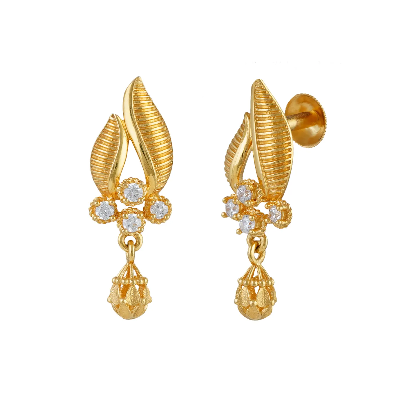 A charming earring that blooms like a flower in your ear, the balls dangling elegantly to the rhythm of your style. The zircons flatter the gold beautifully and make it look charismatic.