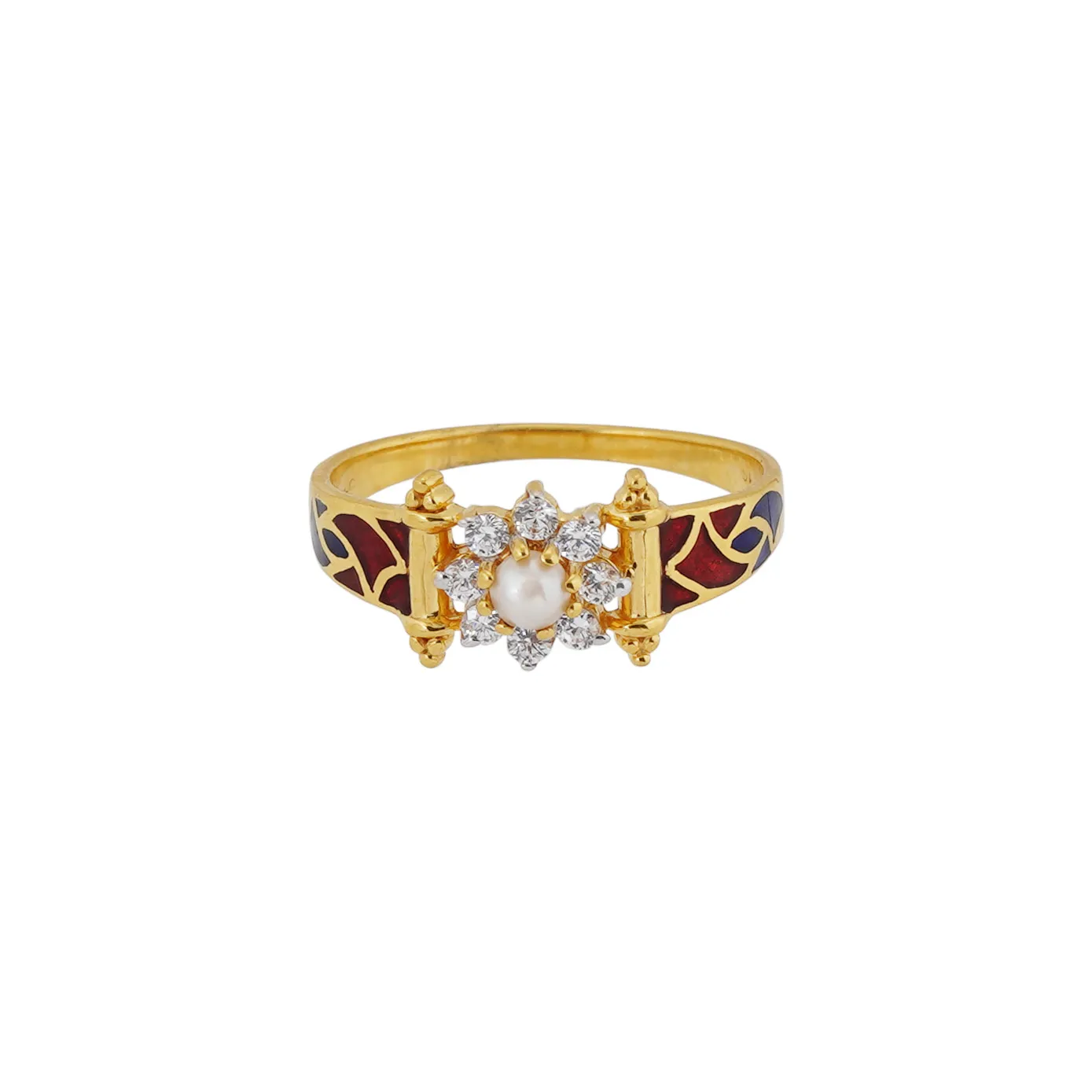 Want to go for a bold look? You might need to check this gold ring then. An attractive art of enamel is given to a portion of the ring, with a cultured pearl and zircons decorated at the centre. It gives off a strong aura just by looking at it.