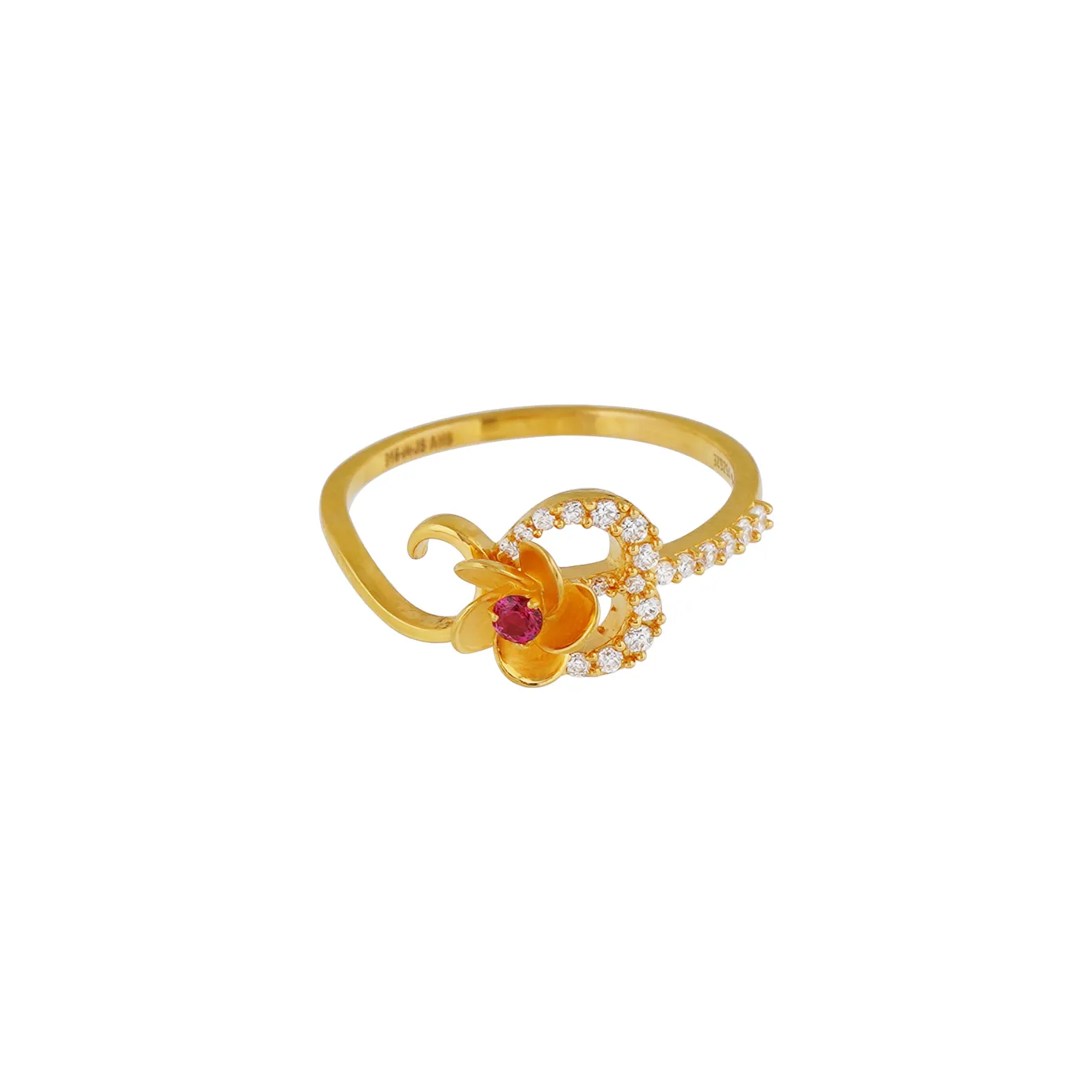 A little illustration of a blossom centered with pink stone on a twirl, headed on thrishul studded with zircons. This finger ring is a perfect match to all your daily outfits.