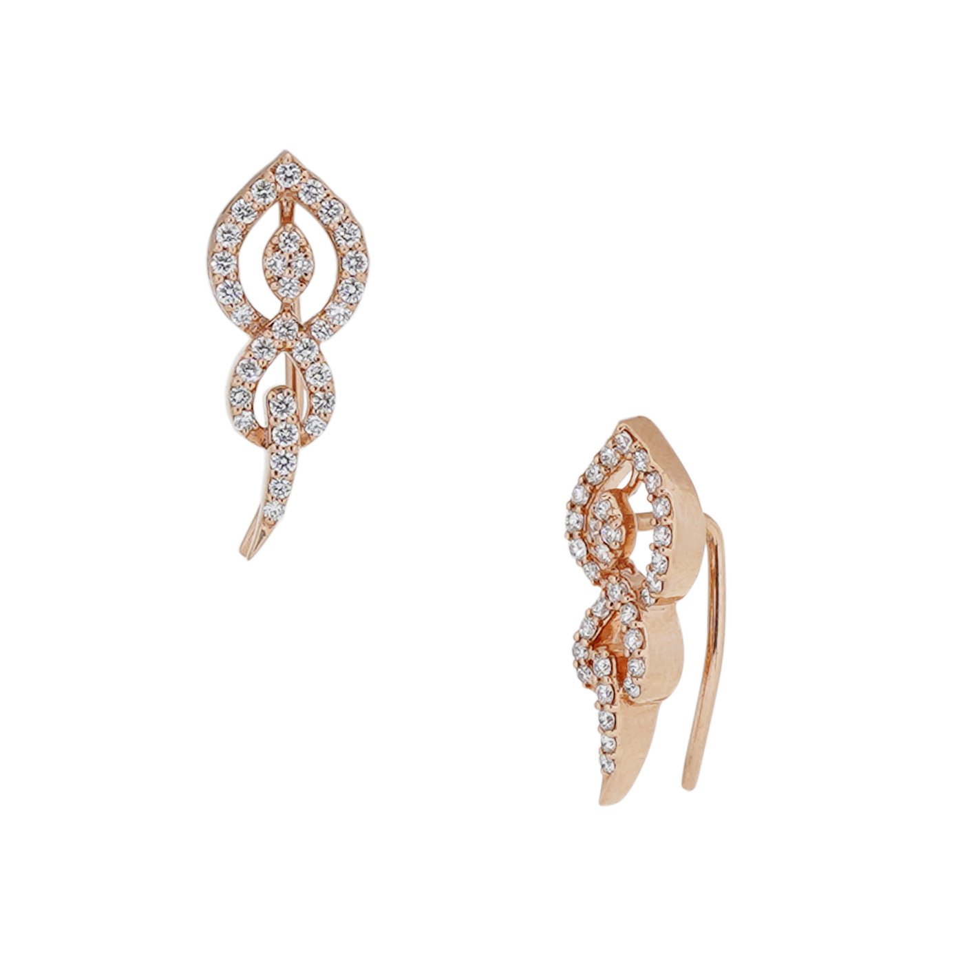 Enchanting diamond ear cuffs made of 18k rose gold, designed to invoke the charm in you. It is a sophisticated simplistic minimal look to be added to your daily attire.