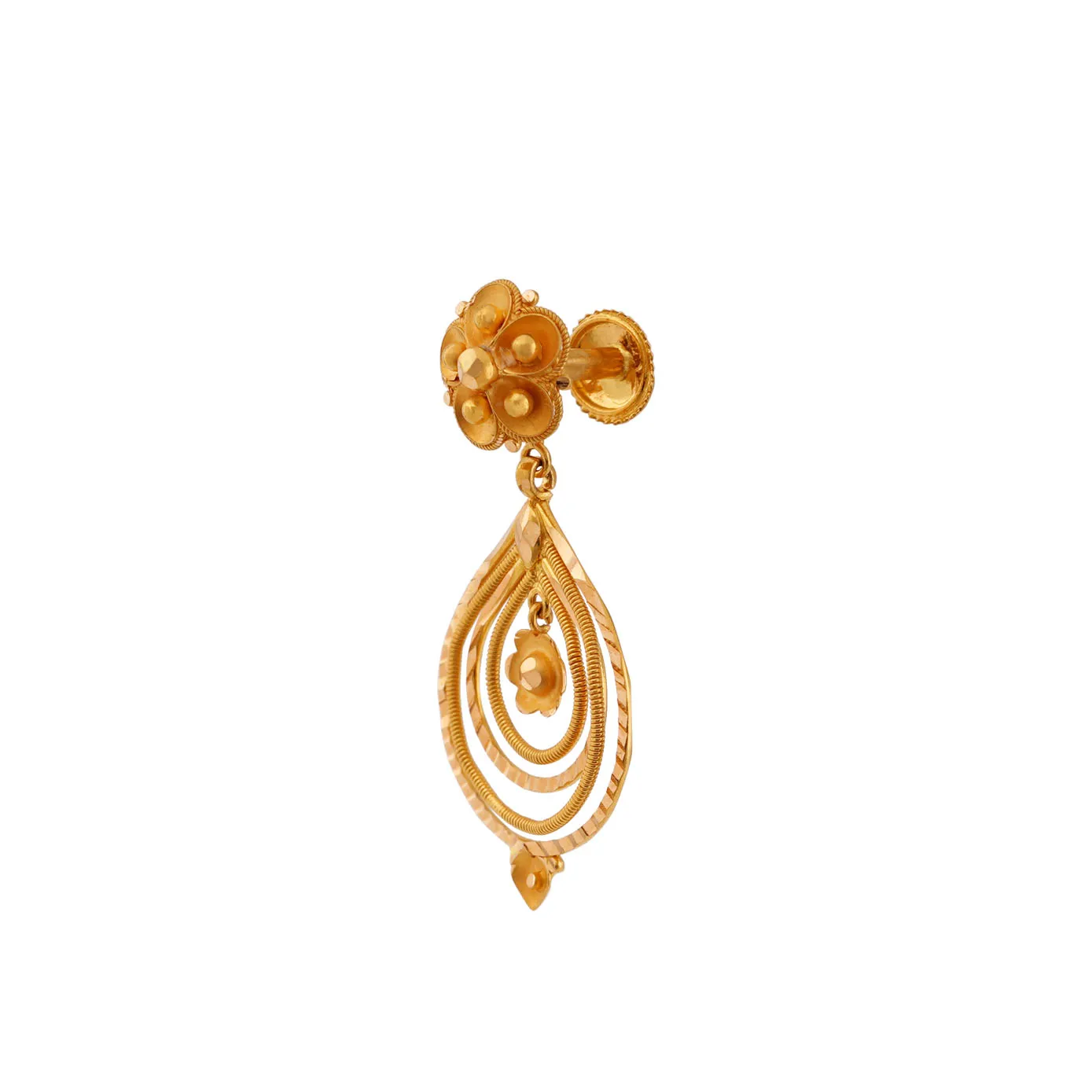Uniquely designed floral top with extravagantly carved concentric circles and a tiny flower drop in the middle, these exclusive danglers are to make your day fulfilled with a lot of compliments. Will you say no to such a unique piece of gold which is gonna adorn you with compliments?