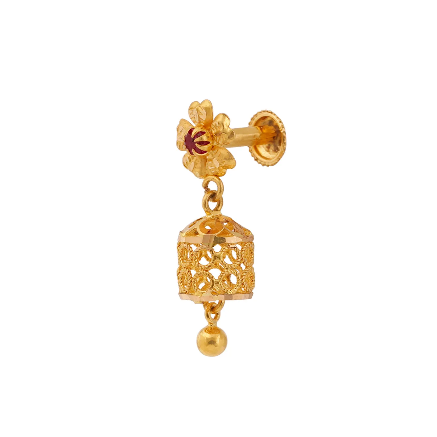 Touch of grandiosity to be added to your daily ensembles with this pair of floral studded jumka earring crafted in 22k gold to bloom like a fresh flower when you adorn with the charm of this earring.