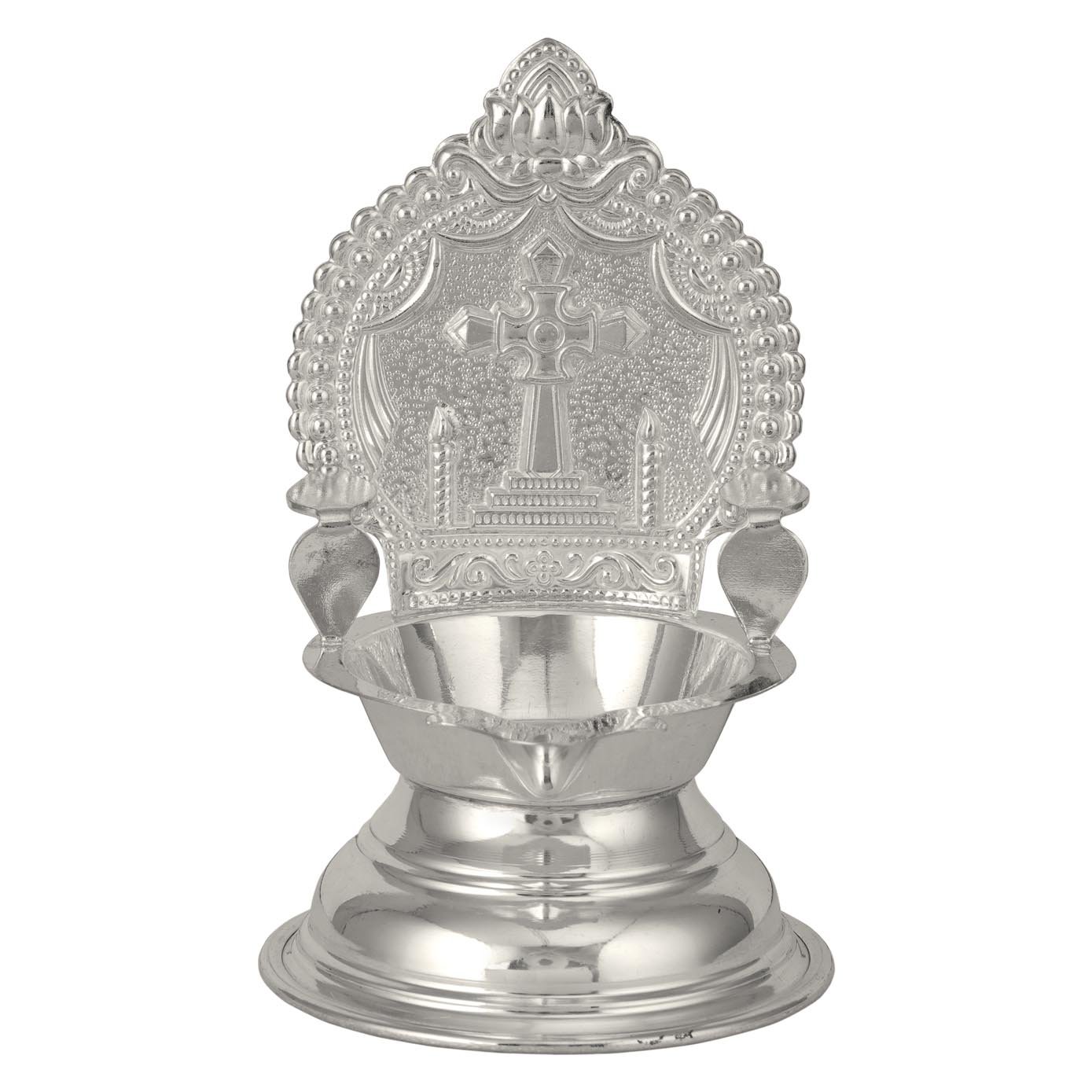The Holy Jesus just showers his blessings on all his children with mercy. This beautifully carved silver vilakku with the holy cross on it will be an apt article to wish for his mercy.