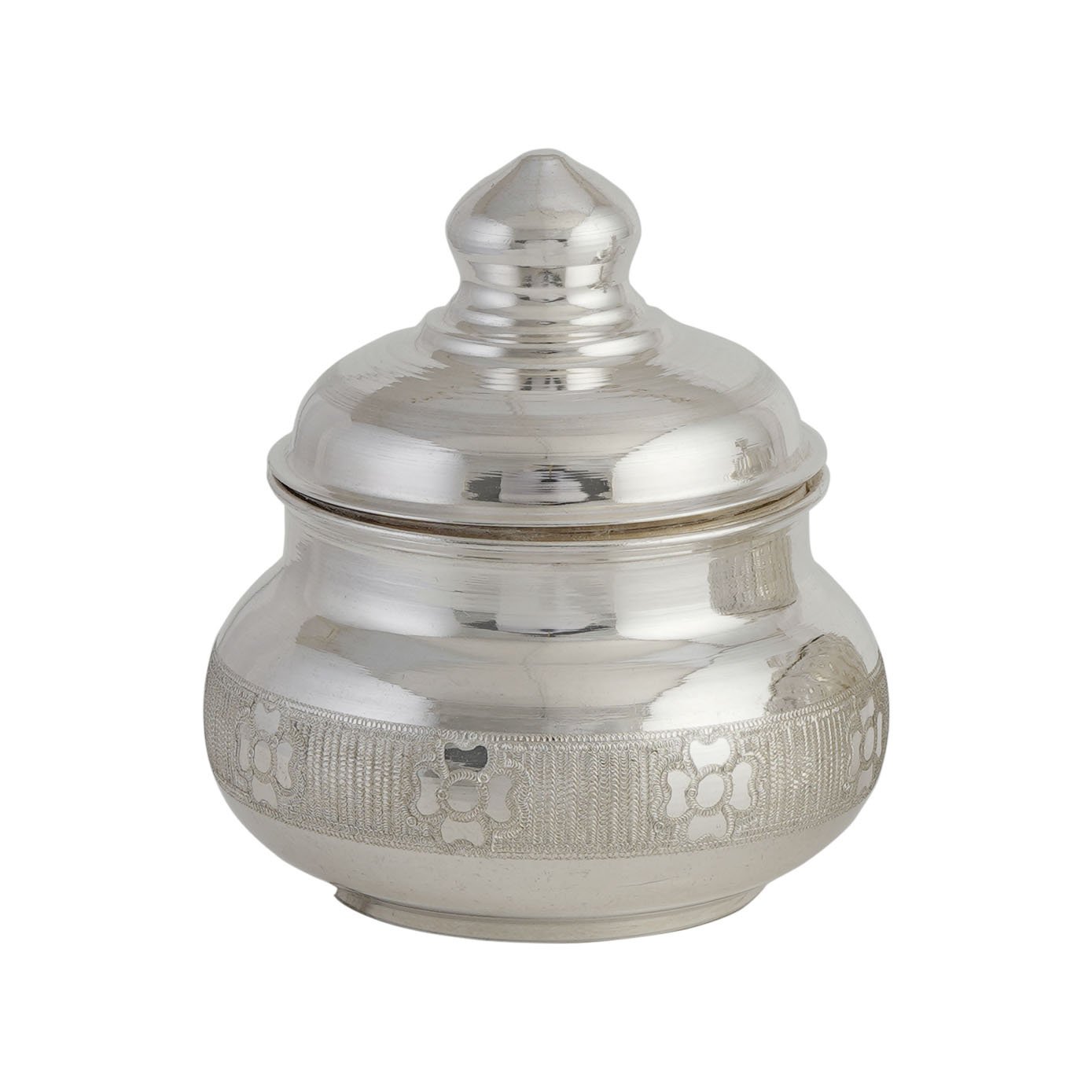 An enthraling pot model Kum-Kum Chimil with digital designing and minute floral carvings on it to make this more special.